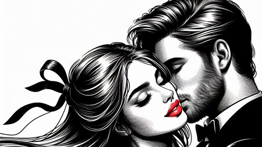 Чёрно-белая силуэтная векторная графика: Влюблённые