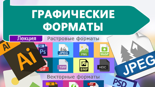 Графические форматы — это стандарты для хранения и передачи изображений. Они определяют, как данные об изображении (пиксели, цвета, метаданные) сохраняются в файле. Разные форматы имеют свои особенности, такие как степень сжатия, поддержка прозрачности, анимации и качество изображения. Наиболее популярными растровыми форматами являются: PSD, JPEG, PNG, WebP, HEIC/HEIF, GIF, TIFF, BMP. Наиболее популярными векторными форматами являются: AI, CDR, EPS, SVG, PDF. Это собственный формат файлов, разработанный компанией Adobe для программы Adobe Photoshop...