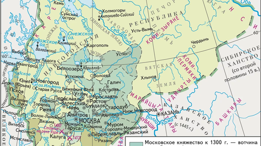 Великое княжество Московское это средневековое русское феодальное государство. Первоначально удел Великого княжества Владимирского, с середины XIV века в результате превращения Владимира в наследственное владение московских князей. С 1330-х до 1480 года московские князья, за редкими исключениями, — держатели ханского великокняжеского ярлыка, за получение которого они боролись с двумя другими крупными княжествами: Тверским и Нижегородско-Суздальским. С дальнейшим расширением владений московских...