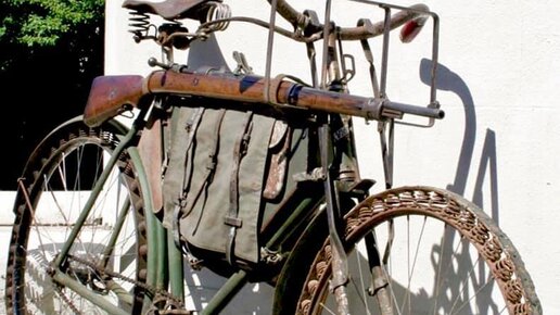 Военный велосипед в первую мировую с пружинами вместо резиновых колёс