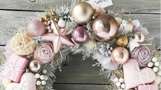 Классический новогодний венок, преимущественно, из зелёных веток. Но сегодня покажу подборку из нежных венков. Они такие красивые, слов нет. В таких венках больше декора, чем веток. Даже сами веточки и мишура под цвет шариков и цветов. Можно рассматривать его долго. Настоящее произведение искусства, которое будет радовать в течение всех новогодних праздников. В этом варианте декоративного венка много мелких шариков, натуральный декор - шишки. Можно обмотать гирляндой с красивыми крупными лампочками и будет красиво даже в ночное время...