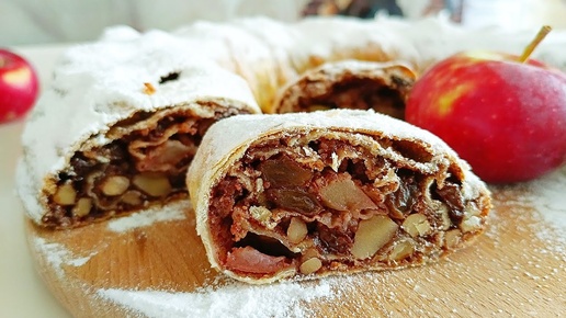 Яблочный штрудель с грецкими орехами и изюмом! Венский рецепт.