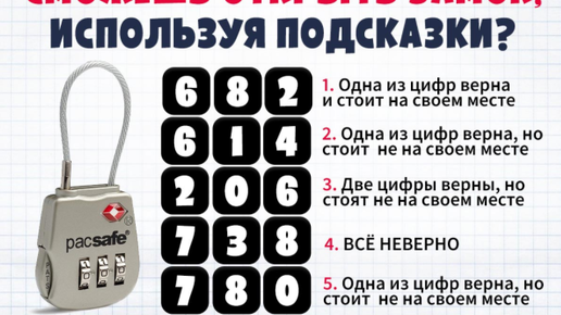 Недавно на просторах Интернета я встретил достаточно интересную задачу про шифр из трех цифр. Дается 5 подсказок.