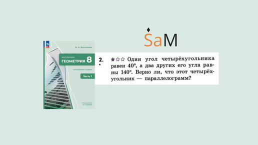 Мои каналы Дзен: https://dzen.ru/saintmath Vkвидео: https://vkvideo.ru/@club231069125 Телеграм: t.me/saintmath RUTUBE https://rutube.ru/u/sam/ Там можно также посмотреть задания в письменной форме и видео 8 КЛАСС. ВОЛЧКЕВИЧ. УГЛУБЛЕННЫЙ УРОВЕНЬ. ГЕОМЕТРИЯ В 2 ЧАСТЯХ 2. Один угол четырехугольника равен 40, а два других его угла равны 140...