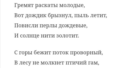 Стихотворение "Весенняя гроза" было написано Тютчевым в 1828 году. В 1854 году автор изменил его именно вторая версия стала известна. Жанр стихотворения- пейзажная лирика с элементами философского рассуждения. "Весенняя гроза" показывает, что человек и природа едины. Для этого автора использует эпитеты, метафоры и олицетворение, которые придают грозе характерные для людей черты. Тютчев создают своеобразный звуковой "рисунок" речи с помощью аллитерации. Стихотворный размер" Весенняя гроза" - четырёхстопный ямб с пиррихием и прекрасной рифмовкой...