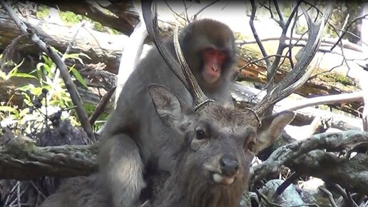 Вернись, лесной олень, по моему хотенью! Японские макаки спариваются с оленями