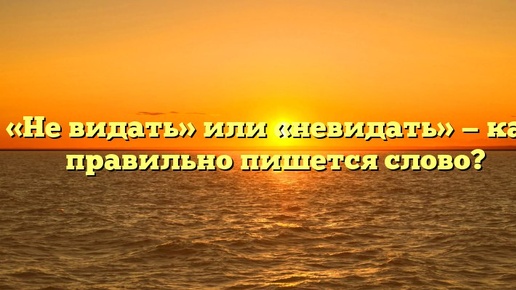 «Не видать» или «невидать» — как правильно пишется слово? Написание выражения – «не видать» или «невидать» – определено орфограммой «Не с глаголами». Как пишется правильно: «не видать» или «невидать»? Безошибочен первый вариант – «не видать». Какое правило применяется? «Не видать» – сочетание отрицательной частицы «не» с глаголом несовершенного вида «видать» в форме инфинитива, имеющего значение: неоднократно, много раз видеть, встречать кого-либо, что-либо. Слово исконно русского происхождения, происходит от древнерусского «видѣти»...