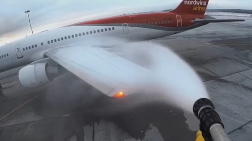 В аэропорту Оренбурга показали, как «купают» самолеты