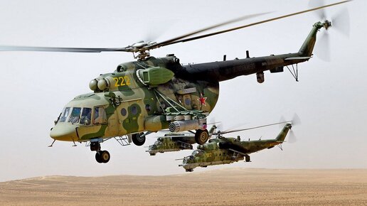 Сирийские военные при поддержке ВКС России и подразделений нашей армии на земле продолжают вычищать многострадальную сирийскую землю от черных пятен псевдохалифата. На видео, которое появилось в сети, запечатлен один из таких боевых эпизодов совместной работы. Российские ударные вертолеты Ми-24 (Ми-35) по-очереди заходят на цель и производят залп неуправляемыми авиационными ракетами (НАР). После нескольких витков к ним присоединяется и транспортно-штурмовой вертолет Ми-8 АМТШ...