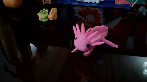 Здравствуйте! Я аксолотль, я сделан из пластилина, хотя бывают живые и очень симпатичные! Я "взрослая" личинка земноводного, живу в воде, могу даже в вашем аквариуме. Если у вас нет аквариума, то можно меня слепить из застывающего пластилина, как-то так...