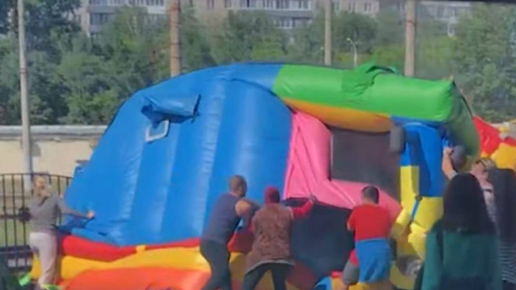 В Барнауле на открытой детской площадке лопнул надувной батут, пострадали 2 девочки - ударной волной их откинуло через забор на трамвайные пути Пострадавшие дети находятся в крайне тяжелом состоянии. Сейчас...