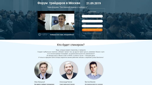 21 сентября пройдет встреча в Москве, трейдеров клуба Cartel. В него входят трейдеры разных брокеров, из разных стран мира. Зарегистрироваться на мероприятие можно тут по ссылке. Если вы не живете в Москве и приехать не сможете, можете смотреть по видео трансляции. Но все равно нужно зарегистрироваться. Кто будет там на сцене спикером? 9 человек. 1. Иван Крошный. Основатель клуба трейдеров Cartel и идейный вдохновитель форума! Он же генеральный директор компании Gerchik & Co. Не путайте с президентом...
