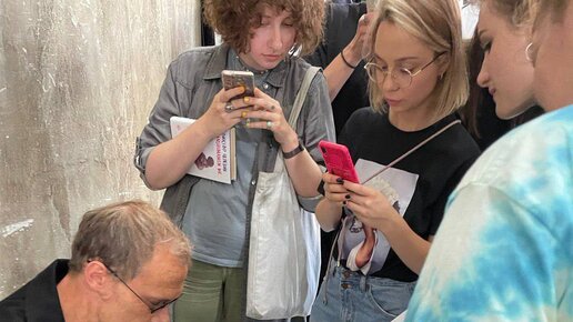 На моей памяти такого не было никогда. Чтобы Виктор Олегович появился на людях, да ещё с автограф-сессией? Да, в ограниченном столичном кругу, но тем не менее. Вывода можно сделать ровно три. Во-первых, Пелевин талантливый если не сказать гениальный пиарщик себя самого. Знает, когда нужно поиграть в таинственность, а когда поднять перископ на публике. И вот эта "закрытая" автограф-сессия тоже станет легендой, будьте уверены. Во-вторых, деньги не пахнут. И если издательство платит за подобное...