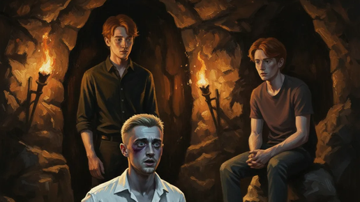Меня ударили прямо в живот, и, осев на одно колено, я зажмурился. — Вставай, Драко, — раздался голос надо мной, и мне протянули руку. Фред Уизли помог мне встать и неловко провёл по волосам. — Прости, — он пожал плечами. — Мне показалось, ты готов отразить удар. Я не знал, что сказать, и лишь улыбнулся. Оглядевшись и потирая живот, я понял, что нахожусь глубоко под землёй. Воздух был тяжёлый, а свет таким тусклым, что множество теней играли на стенах. Джордж сидел на камне, и посмотрев на наручные часы, махнул нам...