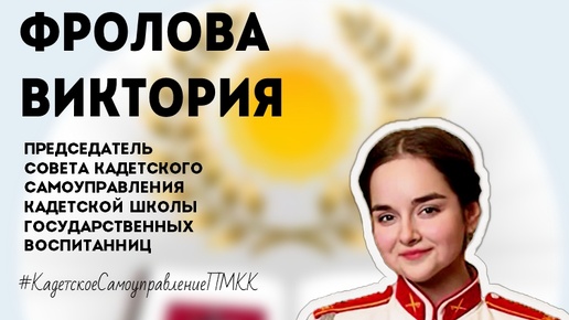 🎙 Знакомьтесь: председатель Совета кадетского самоуправления. Виктория Фролова о себе, творчестве и главных принципах. Меня зовут Виктория Фролова, я учусь в 11 «М» классе, и я являюсь председателем Совета кадетского самоуправления Кадетской школы государственных воспитанниц уже второй год. Находясь в этой должности, я поняла, что это очень ответственная деятельность, ведь перед тобой стоит важная задача — работать на благо нашего Корпуса. 🎶 Сейчас все силы отдаю подготовке к экзаменам. Но в самом напряжённом ритме жизни выпускника-кадета меня поддерживает творчество...