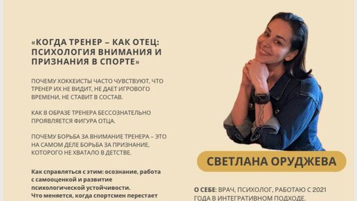 Друзья, помните весной на конференции Воспитай Чемпиона Светлана Оруджева рассказывала об отношениях с тренером? Сейчас у нее запускается интересный курс в легком формате. Со Светой часто работают мои спортсмены, когда спортивной психологии становится недостаточно...