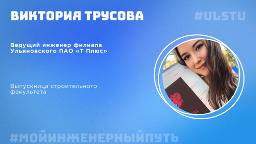 Выпускница УлГТУ Виктория Трусова: Благодарна преподавателям за уникальные возможности и бесценный профессиональный опыт
