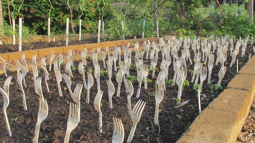 Здравствуйте, здравствуйте, дорогие любители дачи и огорода! А вы знаете как может пригодиться одноразовая посуда на даче? В частности вилки!? Одно прямое применение мы знаем - во время приема пищи, но это еще не все. Даже после этого вилки еще могут "послужить". Для чего можно использовать одноразовые вилки в саду? 1. Подставка для табличек во время выращивания культур. Если прямо на зубцах написать сорт растения, это поможет подвести итоги дачного сезона и выбрать лучшие сорта на следующий год...