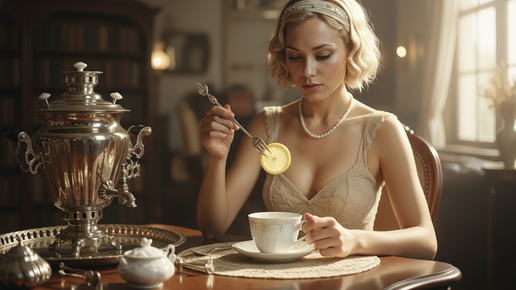 Листая старую книгу о русском чаепитии, я споткнулась взглядом о странную фразу: правильное обращение с лимоном показывает утонченность. Серьезно? С лимоном можно обращаться неправильно? Оказывается, можно. И для этого даже изобрели специальный прибор — лимонную вилку. Маленькую, изящную, с двумя длинными зубцами. В России XIX века без нее не обходилось ни одно приличное чаепитие. Представьте салон той эпохи. На столе фарфоровые чашки, серебряный самовар, вазочка с вареньем. И отдельная тарелочка с тонкими ломтиками лимона, рядом с которой лежит та самая вилочка...