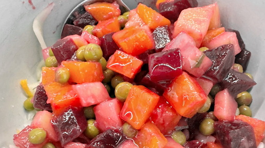 Доброго вам дня, дорогие любители овощных салатов! 😊 Я прекрасно понимаю, что каждый из вас умеет готовить самый вкусный винегрет, но такой подход, который описан в этом рецепте, используют не все, и не все о нем знают. А если и знают, то многие не используют, что зря, на мой взгляд. Винегрет по этому рецепту, приготовленный утром, остается разноцветным и к вечеру после многократного перемешивания остается разноцветным, а не бордовым или каким-то там пурпурным из-за свеклы. Вообще, винегрет изначально – это название не салата, а французского соуса для салатов...