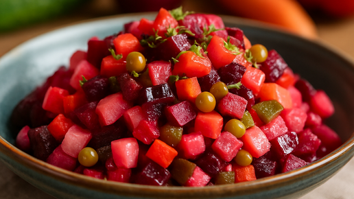 Дорогие гурманы и просто любители порубить всё подряд, а потом называть это «знаменитым семейным рецептом»! Сегодня у самовара обсуждаем нечто удивительное: винегрет не как гарнир, не как превью к селёдке под шубой, а как главное блюдо — с белком, изысканными текстурами и, конечно, эффектной подачей. Готовьтесь записывать, спорить с родственниками и искать новые смыслы в свекле. Сколько раз вы подавали винегрет на празднике «между делом», чтобы потом доедать его одну-единственную порцию четыре дня...