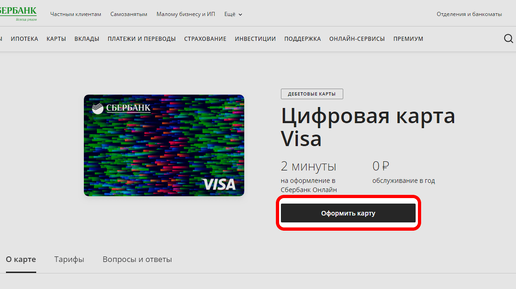 Visa Digital карта Сбербанка - цифровая карта