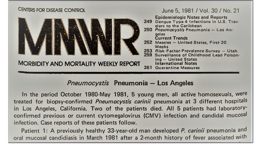 История эпидемии, изменившей мир, началась с короткой заметки, опубликованной 5 июня 1981 года в специализированном издании MMWR (Morbidity and Mortality Weekly Report) — еженедельном отчете Центров по контролю и профилактике заболеваний США (CDC). Пневмоцистная пневмония в Лос-Анджелесе.В период с октября 1980 по май 1981 года у пятерых молодых, ранее здоровых мужчин, являющихся активными гомосексуалистами, в разных больницах Лос-Анджелеса был лабораторно подтвержден случай пневмоцистной пневмонии...