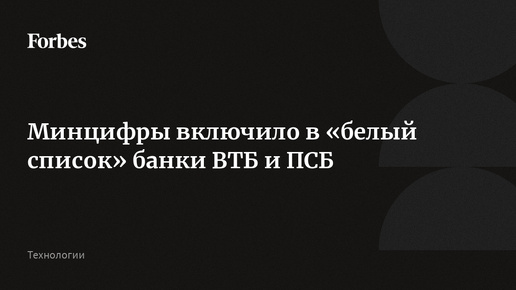 Минцифры включило в «белый список» банки ВТБ и ПСБ