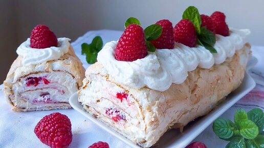 Меренговый рулет с малиной ! Удачный рецепт!