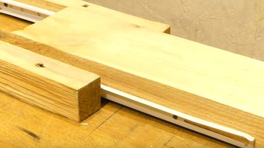 Рассказываем про ещё одну простую самоделку, которая в случае чего выручит. Понадобятся обыкновенные направляющие для ящиков и дверная петля. Также будут нужны кусок сороковки и пара брусков. Направляющие с двух сторон прикрепляем на саморезы к сороковке. Остальные две части нужно будет прицепить к брускам, чтобы доска смогла спокойно ездить. Важно, всё сделать ровно, иначе с плавным движением будут проблемы...