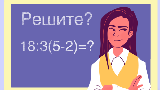 #хакнем_математика 👈 рубрика, содержащая интересный, познавательный контент по математике как для школьников, так и для взрослых 🥳 ЕЩЁ РАЗ о ПОРЯДКЕ ДЕЙСТВИЙ Здравствуйте, уважаемые читатели! Давайте рассмотрим интересный случай на порядок выполнения действий, о котором следует помнить не только школьникам младших классов. Прежде, чем читать далее, прошу Вас устно решить следующий пример: 18:3(5 - 2)=? Несмотря на его простоту многие, подчас даже очень «сильные» ученики, часто совершают здесь ошибку, особенно в тестах, выполняемых «на время»...