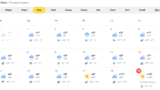 Доброго времени суток! Как мы все заметили погодка в Омске в этом году удивляет. Относительно теплая зима, особенно февраль. Почти бесснежный и дождливый март. И самое главное - удивительно жаркий апрель. Сегодня 19.04.2020! И, на минуточку, погода днем в тени поднималась до +20 градусов Цельсия, а на местности, прогретой Солнцем, и вовсе +24! Погода скорее подходит для 2 декады мая, чем для 2 декады апреля. И мне стало интересно посчитать среднемесячную температуру апреля на текущий момент (неполный месяц) и сравнить со средней температурой апреля прошлых лет...