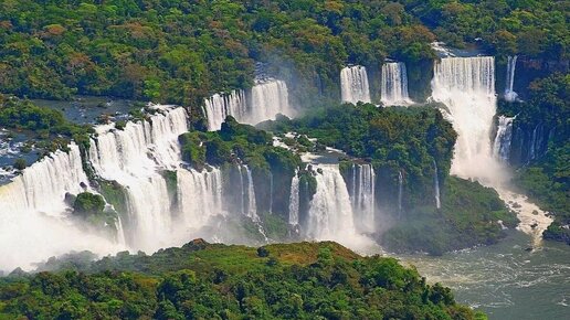 Водопады Игуасу — комплекс из 275 водопадов на реке Игуасу, расположенный на границе Бразилии (штат Парана) и Аргентины (провинция Мисьонес). Водопады находятся на границе аргентинского и бразильского национальных парков «Игуасу». Оба парка были включены в список Всемирного наследия ЮНЕСКО (в 1984 и 1986 годах, соответственно). Название Iguazú (Игуасу) происходит от слов на языке гуарани y (вода) и guasu (большой). Базальтовые отложения, по которым стекают водопады, возникли примерно 130—140 млн лет назад...