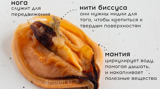 Мы постоянно получаем вопросы по поводу мидий и их частей тела, многие пугаются их и думают, что из мидий что-то надо выковыривать и отделять, чтобы их поесть. Нет!