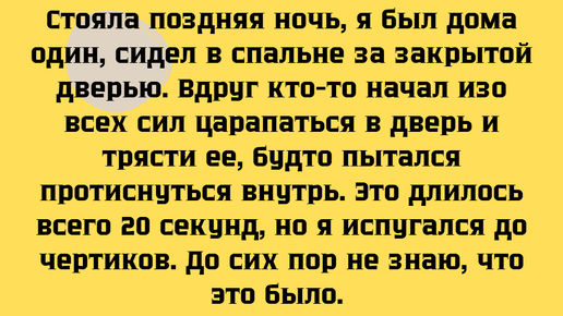 В детстве многие из нас не любили оставаться дома в одиночестве. Воображаемые монстры под кроватью, внезапные шорохи за стеной или неясные тени на шторах вызывали чувство незащищенности. Но иногда и со взрослыми людьми происходят такие истории, что потом сложно прийти в себя...