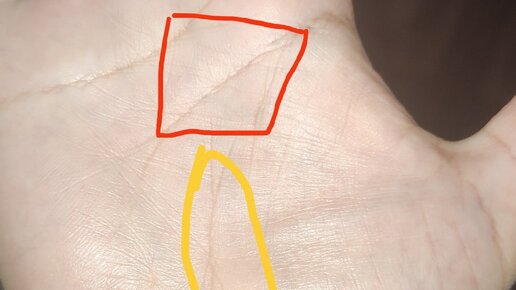 Что значит, этот квадрат на руке. И почему линия жизни не единая, куда-то разветвляется...