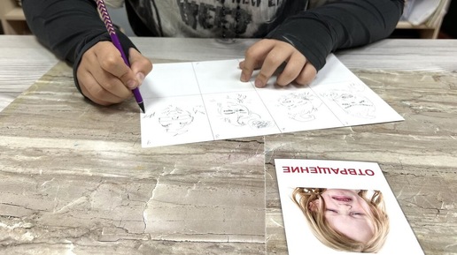 В нескольких «кадрах-квадратах» неприятное, тяжёлое чувство (эмоция) проживается от его «предощущения» до трансформации и появления нового чувства – как правило, ресурсного, положительного. Эмоция отвращения. В этой технике глубинной арт-терапии (*авт. Елена Тарарина) мы работаем с неотреагированными негативными чувствами. Особенно хороша практика тем, что возможно её применение в ситуации острых эмоциональных переживаний. Что нужно? Лист бумаги формата А3, краски, карандаши. Рекомендуется рисовать в цвете гуашью, но и через карандаши получается тоже результативно...