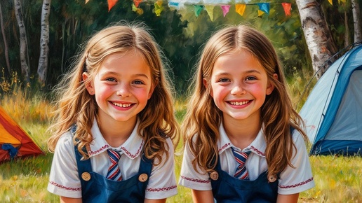 Обычный летний лагерь, обычные дети — и вдруг две девочки, похожие друг на друга как две капли воды. С этой встречи началась наша история... Глава I. Июль стоял теплый, сладкий, с запахом сосновой смолы и перегретого асфальта. Лагерь «Берёзки» жил своей летней жизнью: визги, мячи, музыка из колонок у столовой, детский смех. Где-то на веревках покачивались белые простыни — будто белые паруса, готовые уплыть куда-то в другую, неведомую жизнь. Маша Ларина, худенькая, стройненькая, немного задумчивая девочка с косичками, сидела на ступеньках корпуса и писала маме сообщение в телефоне...