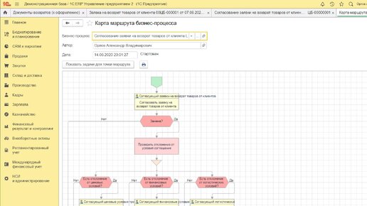 1С ERP возврат товара от клиента