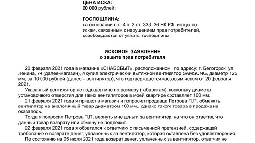 Права потребителя в связи с обменом (возвратом) товара, который не подошел, порядок действий, образцы претензии, иска