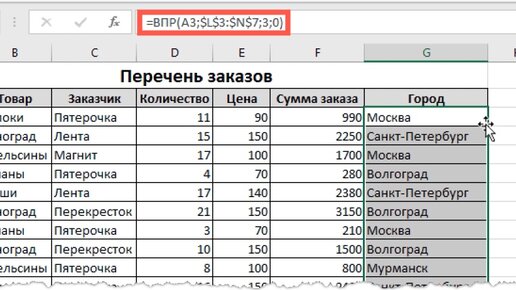 В прошлой заметке я подробно разобрал предназначение и синтаксис функции ВПР. Сейчас давайте рассмотрим хоть и упрощенный, но вполне реальный пример ее использования. Есть три таблицы - прайс-лист, перечень сотрудников и таблица заказов. Все три таблицы вполне могут располагаться на разных листах книги или даже находится в разных файлах. Для удобства и простоты я их разместил на одном листе. Наша задача состоит в следующем: 1. Подтянуть цены из прайс-листа в таблицу с заказами 2. Рассчитать сумму каждого заказа 3...