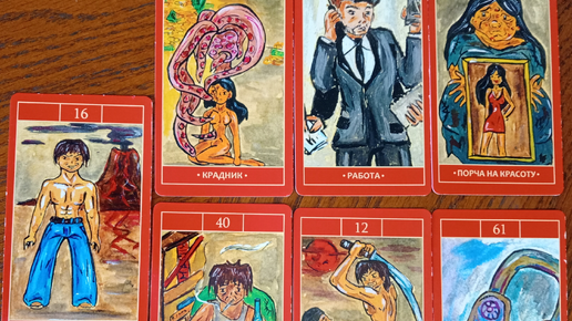 Гадание по картам показала, что это гадание для женщин. Какой негатив применял против Вас, Ваш враг? Вышли карты: "Крадник", "Работа", "Порча на красоту". Как этот негатив сказался на Вашей жизни? Карта "Работа" показывает и подтверждает, что на Вас была проведена магическая работа: "Крадник" и "Порча на красоту". Карта "Крадник" - это коварное и сильное воздействие на Вас, способное лишить Вас удачи, счастья, любви, денег, здоровья - фактически всё это у Вас "украл" Ваш враг. Причиной этому, разумеется, является недовольство своей жизнью во всех направлениях...