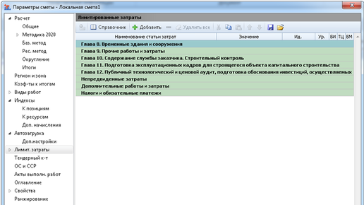 Лимитированные затраты в сметах: НДС, УСН, зимнее удорожание, непредвиденные затраты, временные здания и сооружения