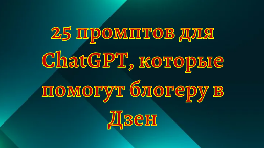 25 промптов для ChatGPT, которые помогут блогеру в Дзен писать в 3 раза быстрее