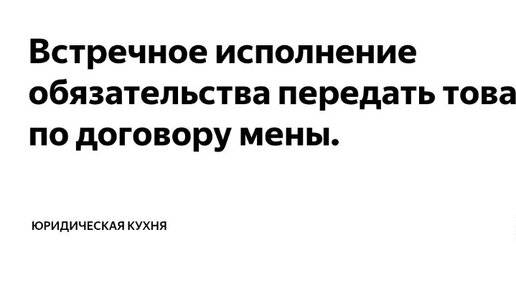 - Встречным признается исполнение обязательства одной из сторон, которое обусловлено исполнением другой стороной своих обязательств ( п.1 ст.328 ГК РФ). Данная норма – единственная, которая из всех видов обязательств относится только к договорам, причем только к тем из них, которые относятся к числу двухсторонних, построенных по принципу DO UT DES ("даю, чтобы ты дал"). Типичным примером являются договоры купли-продажи, мены, подряда и др. К договорам возмездным, но односторонним ( например, к договору займа, включая процентный заем) эта норма не применяется...