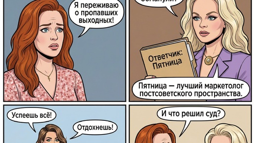 Понедельник. Просыпаюсь с ощущением, будто что-то не так. Настолько не так, что я минуту просто смотрю в потолок и пытаюсь вспомнить: а были ли выходные вообще? Пятница, хитрая предательница, пообещала мне «расслабиться, выдохнуть, сделать всё, что захочу». А в итоге... Суббота как будто махнула мне рукой и убежала. Воскресенье… было? Или это был очень длинный сон? И почему я в понедельник проснулась с тем же уровнем усталости, что и в пятницу вечером? Я выхожу на кухню. Ставлю чайник, сижу и тихо думаю: — Выходных не было...
