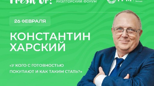 : «Почему у одних агентов покупают легко, а у других — нет?», то вам точно сюда 🔔 26 февраля на Fresh Up 2026 — Константин Харский. Консультант, тренер, писатель. Человек, который с 1992 года работает в тренинговом и консалтинговом бизнесе и знает о продажах и людях больше, чем многие из нас за всю карьеру. 📌 Тема бизнес-тренинга: «У кого с готовностью покупают и как таким стать?» Это будет разговор не про скрипты, а про мышление успешного агента: ➖ какие вопросы он себе задаёт ➖ чему придаёт...