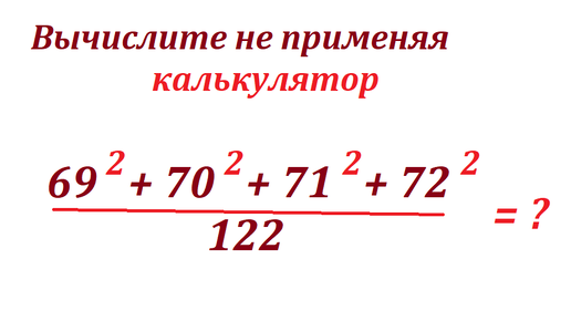 Вычислите рационально это выражение без применения калькулятор: (69^2 + 79^2 + 71^2 + 72^2)/122