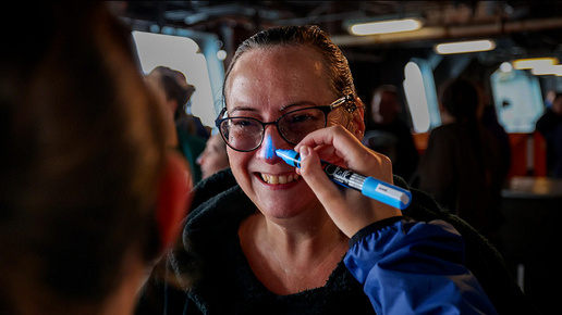 Много разных чудесных обычаев существует на флоте. Или чудны́х? Например, у англосаксов при первом пересечении Полярного круга морякам красят синей краской нос И морячкам тоже Это члены команды британского авианосца "Куин Элизабет". Таковых оказалось 174 человека. Что меня сильно удивило, учитывая общее количество команды. Неужто все остальные уже за Полярным кругом побывали? Или большинство просто увильнули от этой процедуры, ведь кроме покраски носа, все они должны были окунуться в ванну с ледяной забортной водой...