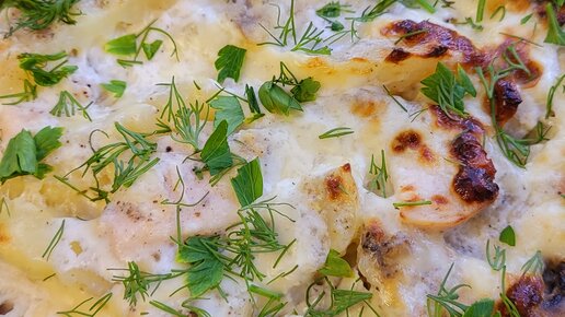 Как быстро, а главное вкусно накормить всю семью. Сейчас расскажу. А еще это блюдо не навредит Вашей фигуре. Кто придерживается правильно питания, можете смело готовить его. Давайте приступим. И Нам потребуется 500 гр. Картофеля 500 гр. Грудки 500 гр. Шампиньонов 2 яйца 5 ст. л. Сметаны 100 гр. Сыра Соль, перец и специи по вкусу Зелень Наризаем крупно картофель, берём глубокую форму для запекания и складываем его туда. Форму, я немного смазала подсолнечным маслом. Также в форму отправляю нарезанную грудку и шампиньоны...